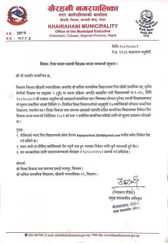 रिक्त पदमा स्थायी शिक्षक सरुवा सम्बन्धी सूचना ।