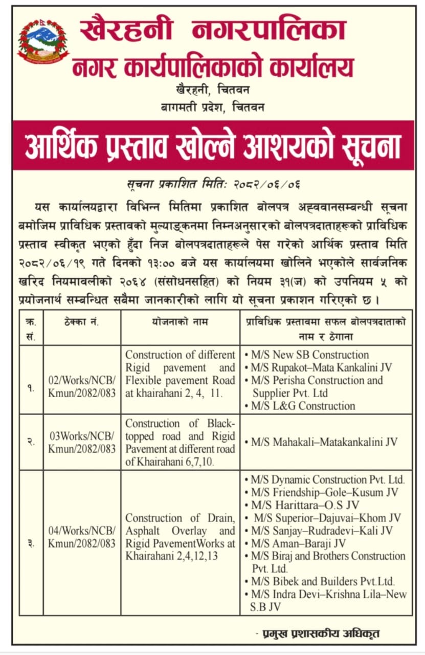 Home » आर्थिक प्रस्ताव खोल्ने आशयको सूचना