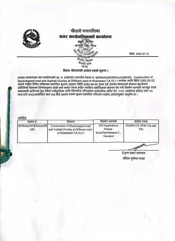 आर्थिक प्रस्ताव खोल्ने आशयको सूचना !!(07/Works/NCB/Kmun/082/83)